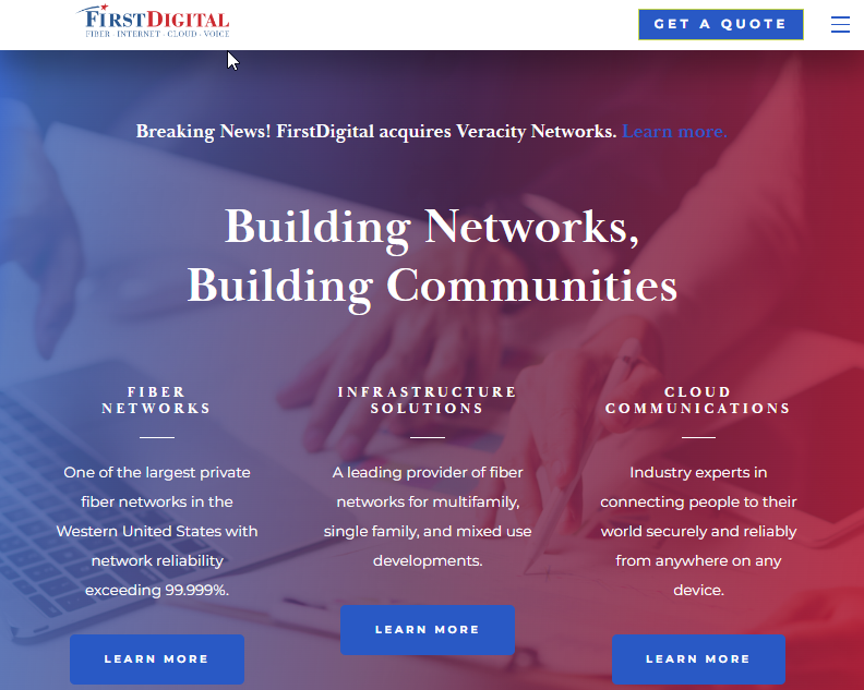 FirstDigital Telecom is a fiber-based carrier in the Western US providing business services including Local Voice, Long Distance, Internet, VOIP, CO-Location, Managed Services and Fiber-to-the-Tower/Premise.