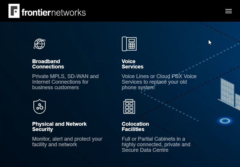 Frontier Networks, based in Canada is different than the Frontier in NY. They offer voice and data and similar services in Canada.