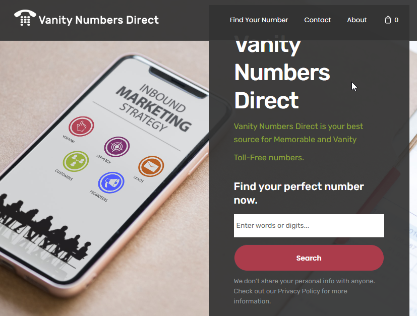- Website: https://vanitynumbersdirect.com/ Domain since 2018 (8y)