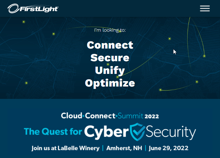 Headquartered in Albany, New York, FirstLight provides fiber-optic data, Internet, data center, cloud, unified communications, and managed services to enterprise and carrier customers throughout the Northeast and mid-Atlantic.