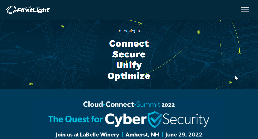 Headquartered in Albany, New York, FirstLight provides fiber-optic data, Internet, data center, cloud, unified communications, and managed services to enterprise and carrier customers throughout the Northeast and mid-Atlantic.