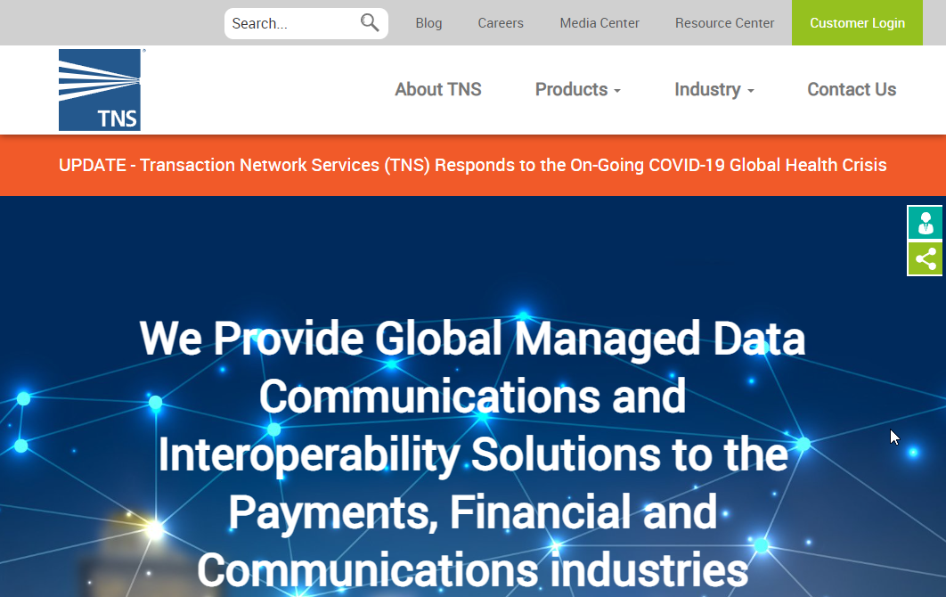 Since 1990, TNS has been a preferred supplier of networking and integrated data services to many leading organizations in the global payments and financial communities, as well as a provider of extensive telecommunications network solutions to service providers.