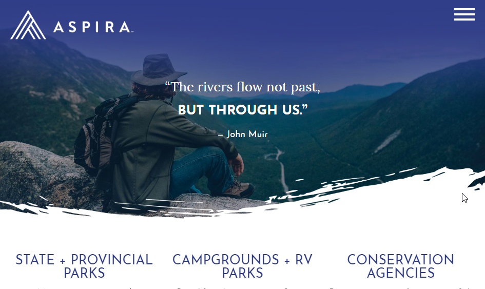 Originally ReserveAmerica, not called Aspira Connect, they are a reservation and licensing service for federal provincial and local government park and conservation agencies, and campground owners, connecting them with outdoor adventure seekers from around the world.